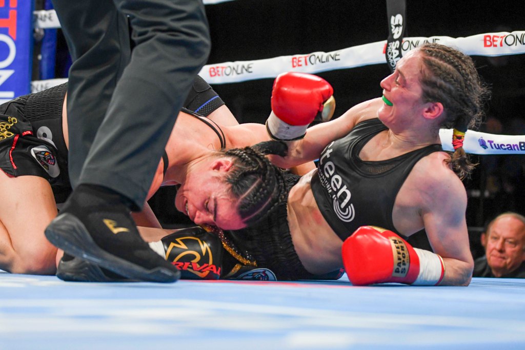 The match included several point deductions. Persoon lost two points for punches to the back of the head, while Veyre was deducted two points for holding. Swelling developed around Veyre’s left eye in the fourth round, but she continued to box smartly and control the center of the ring.